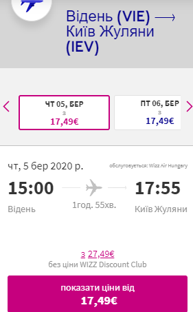 Дата – 5 березня. Вартість квитка в один бік — €17 для учасників wizz-клубу та €27 для всіх інших.