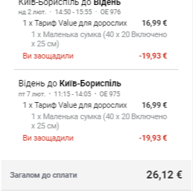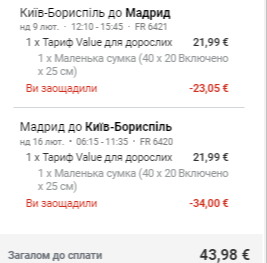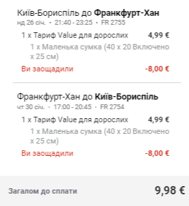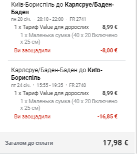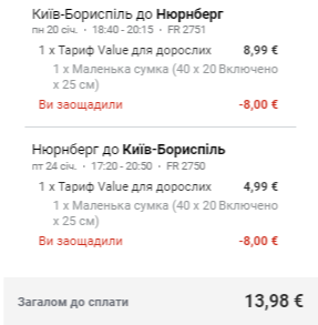 У вартість квитків входить ручна поклажа розмірами до 40х20х25 см.