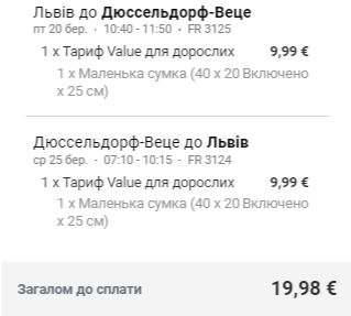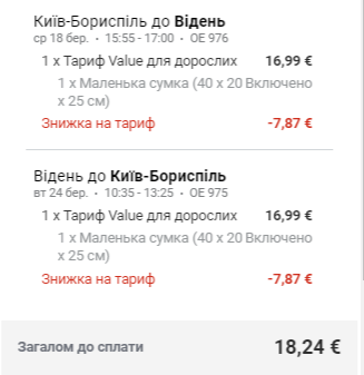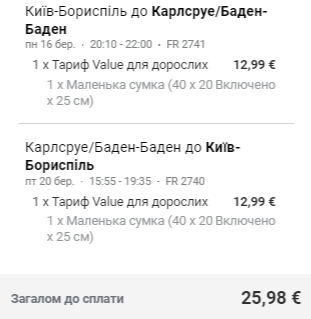 У вартість квитів входить ручна поклажа розмірами до 40х20х25 см.