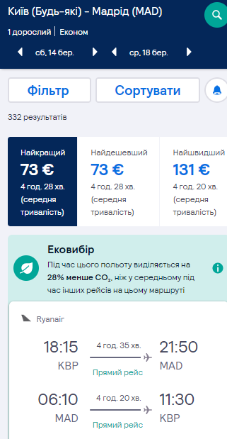 Дати: 14-18 березня. Вартість квитків у два боки — €73