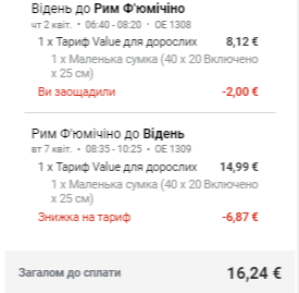 Дати подорожі: 31 березня – 7 квітня. Вартість усіх квитків – €76.