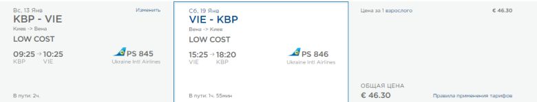 Київ – Відень, 13-19 січня – 46,3 євро