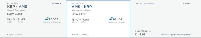 Київ – Амстердам 15-22 січня – 49,68 євро.