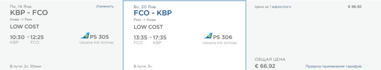 Київ-Рим, 14-20 січня – 66,9 євро.