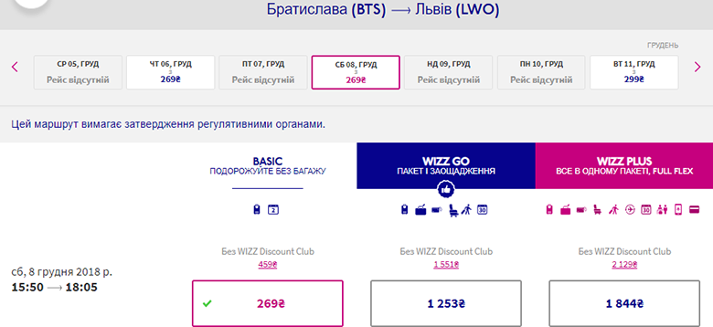 Дати – 1-6 грудня. Ціна в обидва боки – ₴1198 або €36 для учасників Wizz-клубу та ₴1818 або €55 для всіх інших.