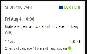 Братислава-Відень – 10 євро ТН (автобус) , 4-7 серпня