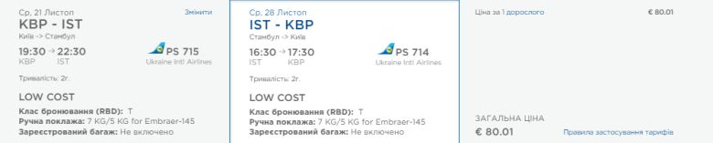 Київ – Стамбул, 21-28 листопада – 80 євро у два боки