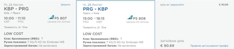 Київ – Прага, 23-29 листопада – 90,7 євро у два боки