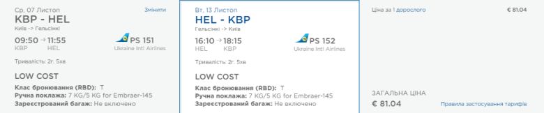 Київ – Хельсінкі, 7-13 листопада – 81 євро у два боки