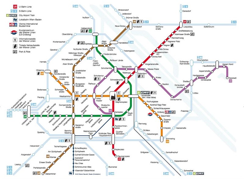 Такая разветвленная и хорошо налаженная сеть позволяет вам беспрепятственно и комфортно добраться почти до всех городских достопримечательностей. Тем более, что в центре Вены плотность станций весьма высока.
