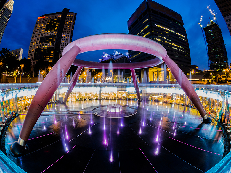 Фонтан богатства находится в одном из крупнейших сингапурских моллов – Сантек-Сити. Это самый большой фонтан в мире, по крайней мере, так утверждает Книга рекордов Гиннесса.