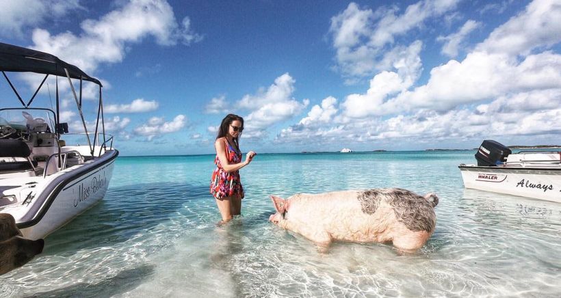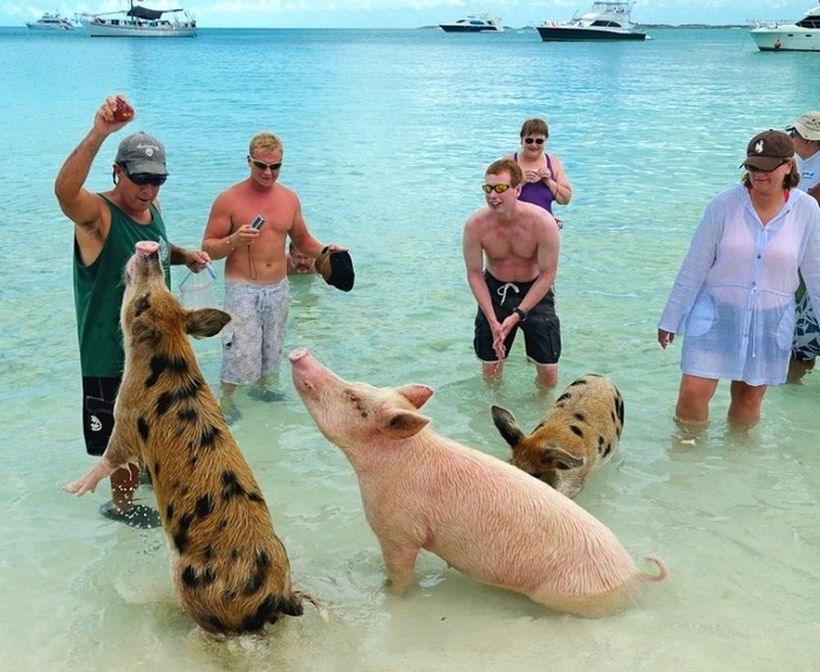 Туристів приваблюють на острів свині, що вільно плавають у морі. Отож десятки човнів та яхт прибувають сюди з метою познайомити людей з незвичайними тваринами.