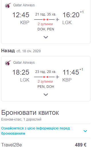 Київ – Лангкаві, 9-18 січня – 489 євро