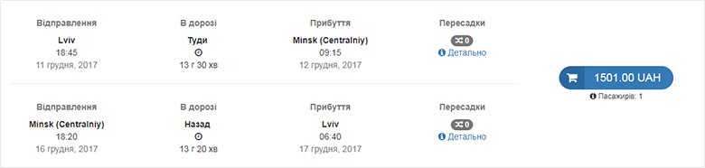 Подорож плануємо на 11-16 грудня. Вартість у два боки – 2090 грн або €65.