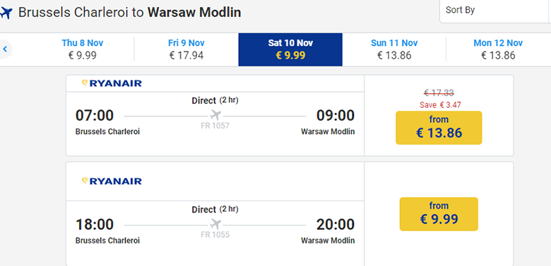 В Брюссель вилітаємо 8 (або 7) листопада. Ціна квитка – €14.