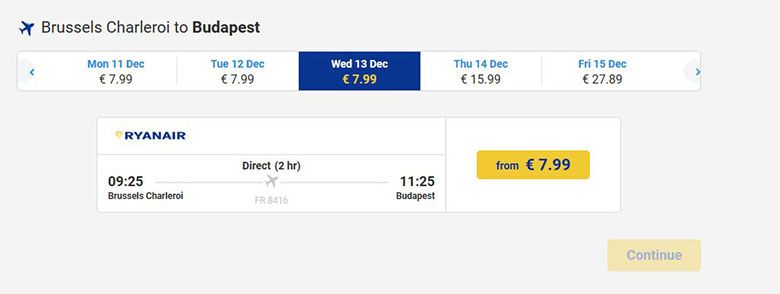 З Брюселю 13 грудня у Будапешт – 8 євро.