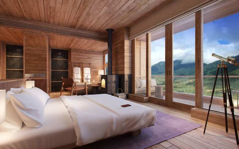 Пять роскошных лоджий будто предлагают совершить путешествие по впечатляющему ландшафту Бутана. Оно начинается в домике Thimphu с видом на древние монастыри, разбросанные по лесистым горам. Домик Punakha открывает своим гостям вид на рисовые поля. Особенностью шале Gangtey является уникальный мост для наблюдения за птицами. Из Paro гости могут любоваться развалинами ХII века и ячменными полями. Конечным пунктом назначения является деревянная вилла Bumthang в сосновой роще.