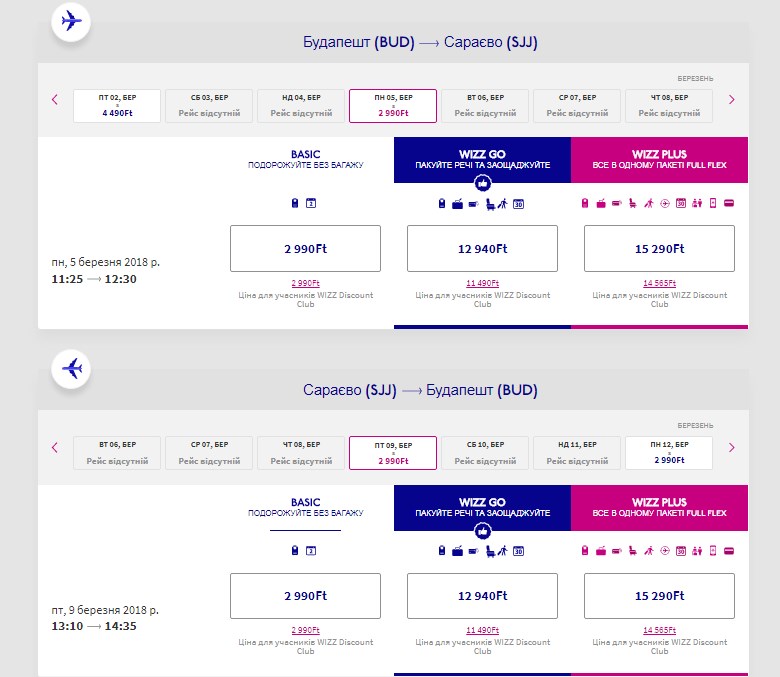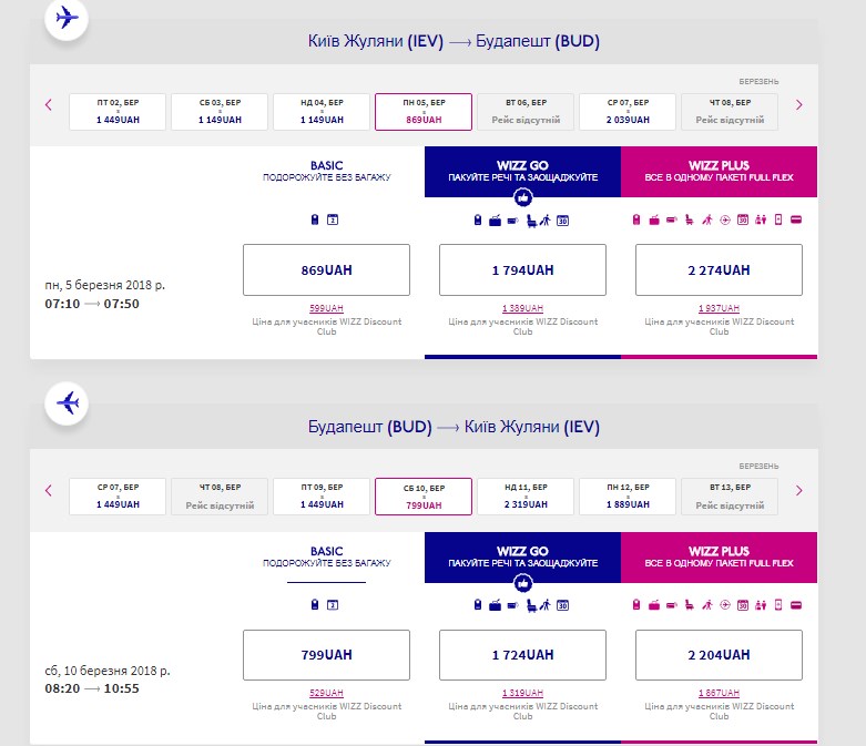 Київ – Бадапешт, 5 – 10 березня, 36 євро.