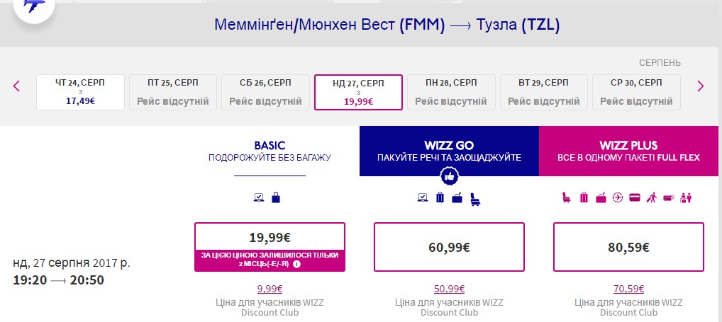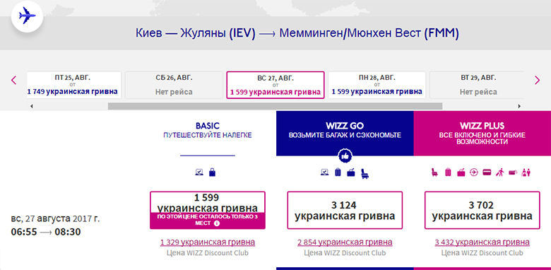 Даты тура – 27 августа – 4 сентября. Цены указаны для членов клуба Wizzair.