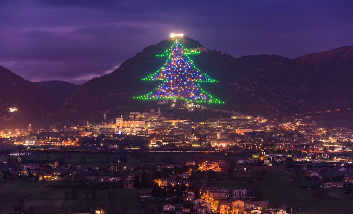Її знають у всьому світі – різдвяна ялинка розміром з гору, зроблена з сотень справжніх живих сосен. В Губбіо найвищі дерева на схилах гори Інгіно прикрашені безліччю вогнів, і створюють обриси різдвяної ялинки висотою 609 метрів, що охоплює гору від підніжжя до вершини. Вона завжди горить з 7 грудня до першого тижня січня. Більш того, найбільшу в світі різдвяну ялинку щороку запалює помітна фігура, наприклад, Папа в 2014 році. А в 2017 році її запалювали з космосу.