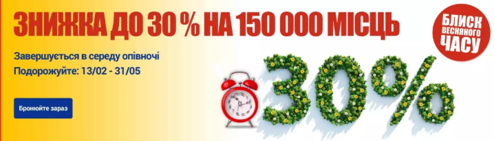 Забронювати квитки за зниженими цінами можна з Києва, Львова, Харкова, Одеси, Херсона.