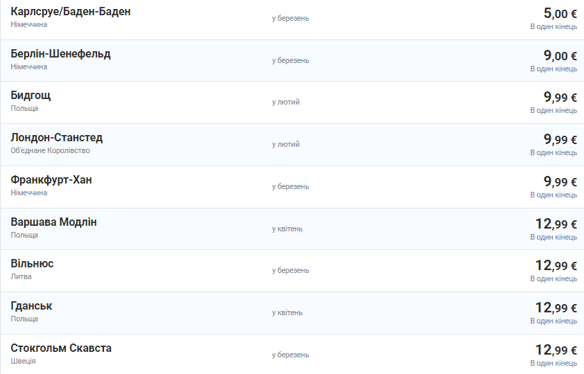 Дати: 8-12 квітня. Вартість у два боки — €65