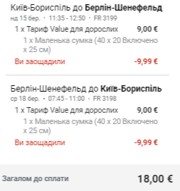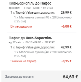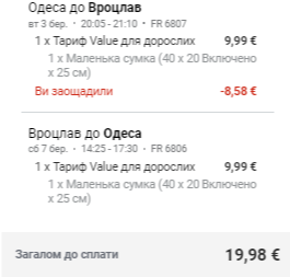 У вартість квитів входить ручна поклажа розмірами до 40х20х25 см.