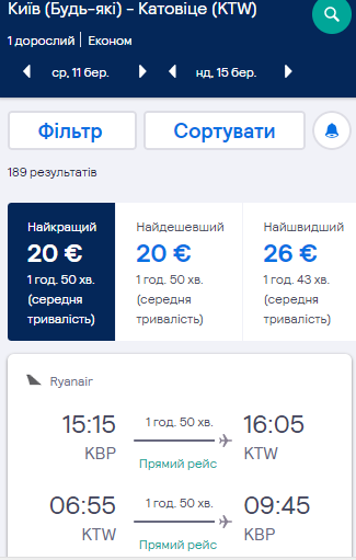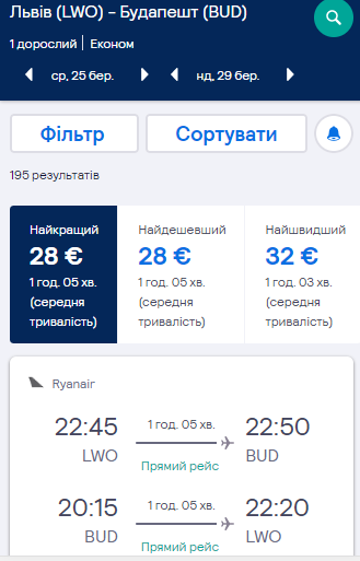 Підібрати необхідні дати, час перельотів та придбати квитки можна на сайті Ryanair або на Skyscanner.