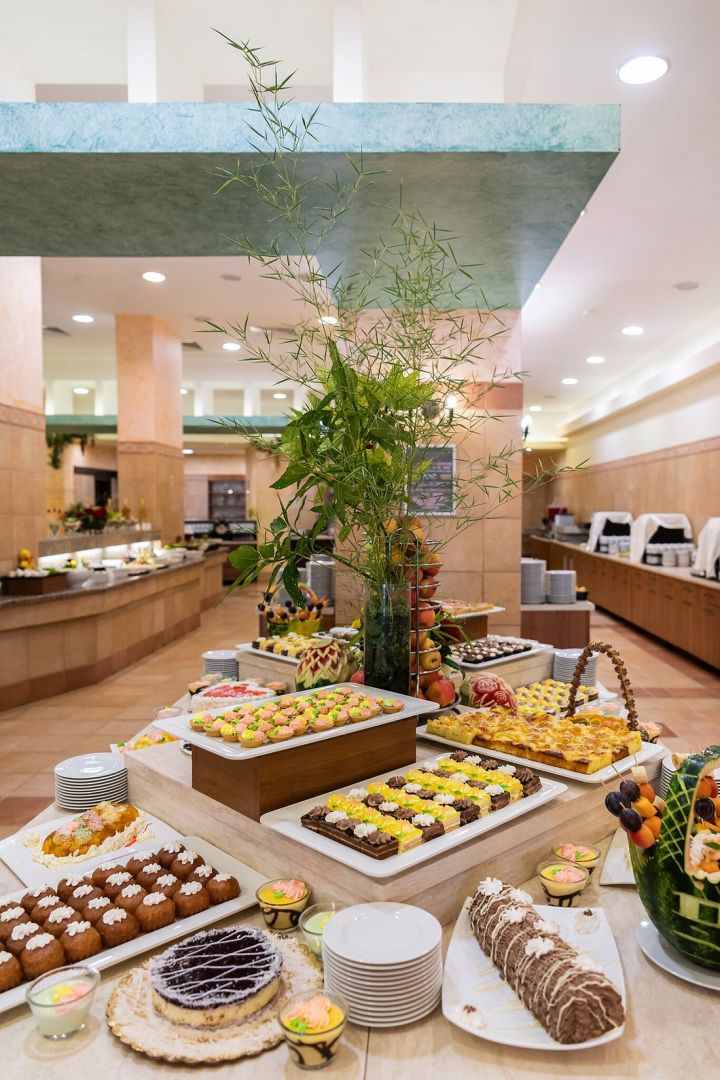 Найбільший + готелю це харчування. Дуже вже смачне і основне – свіже. Фреші і кава в головному ресторані лише на сніданок є, кава дуже смачна саме з сенсорних кавомашинок. А так каву на протязі дня в лоббі барі можна брати. Сири тут постійно є всіх видів, ну дууууже смачні. І сиров’ялені іспанські ковбаси чорізо і схожі на них є постійно) З фруктів щодня були дині, кавуни, персики, нектарини, апельсини, ківі, яблука, черешні, рідше груша, полуниця, ананас, банан. М’ясні страви були різноманітні, щодня риба, телятина, свинина, курка. Раз були кільця кальмарів в паніровці. Морозиво на обід і вечерю береш скільки хочеш.