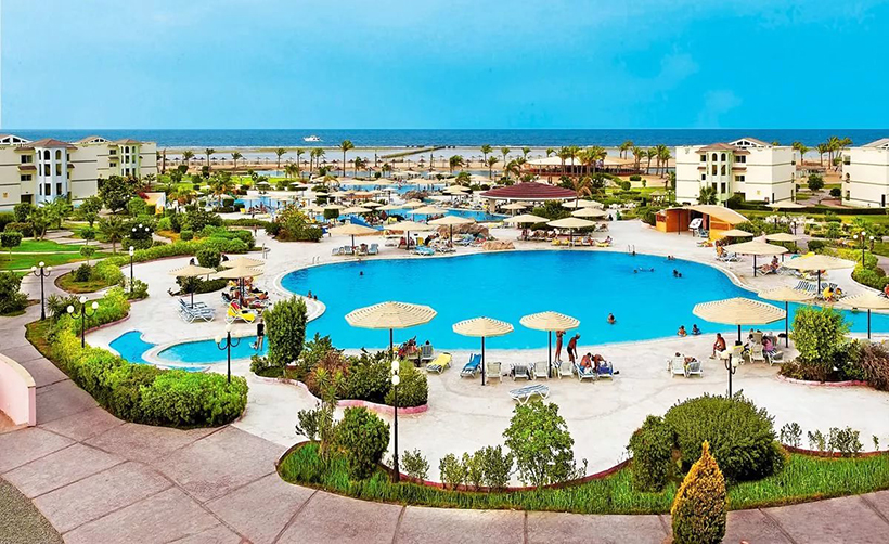 Отель расположен 25 км от центра г. Хургада, в Макади Бей, на первой береговой линии (собственный пляж). Длина пляжной полосы 600 м, рядом кораллы, понтон, есть песчаный вход в море, на пляже – озеро с морской водой.
