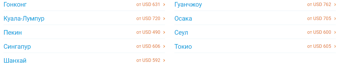 - в Азію та Африку – Сеул, Пекін, Осака, Шанхай, Сингапур, Денпасар, Куала-Лумпур, Джакарта Найробі та ін.;