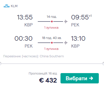 Забронювати квитки можна на сайтах KLM, Air France, на Kiwi.com або на Skyscanner.