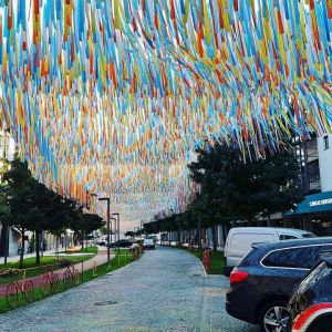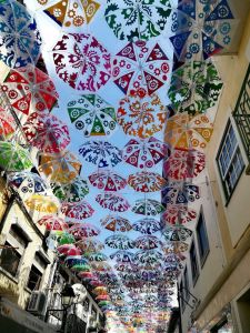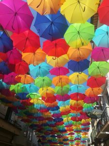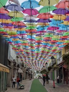 Ця чудова інсталяція з парасольками розташована в китайському місті Qujing (складно з транслітерацією назви). Але є маленький нюанс. Це копія проекту «Umbrella Sky», який був народжений в португальському місті Агеда (Águeda), з інсталяціями із великої кількості різнокольорових парасольок.