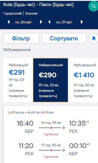 Lufthansa Group (Lufthansa, Austrian Airlines, Swiss) пропонує рейси за зниженими цінами з міст України до Шанхаю та Пекіна. Забронювати квитки можна з Києва, Львова, Дніпра, Одеси.