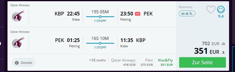 Київ – Пекін, 11-22 листопада – €351 у два боки.