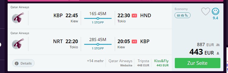 Київ – Токіо, 11-22 листопада – €443 у два боки.