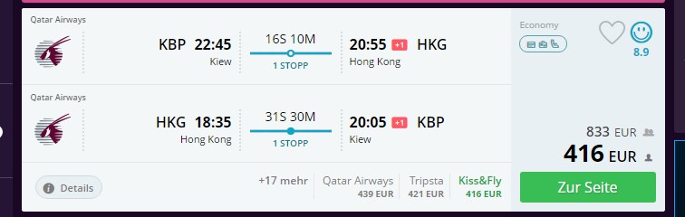 Київ – Гонг-Конг, 11-22 листопада – €416 у два боки.