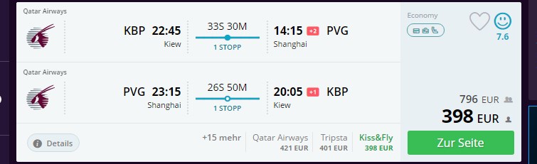 Київ – Шанхай, 11-22 листопада – €401 у два боки.