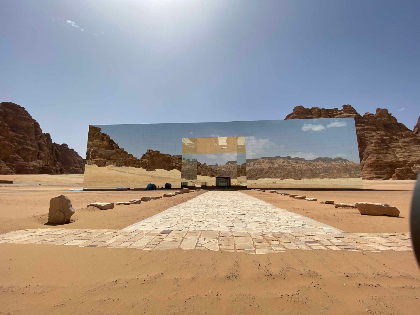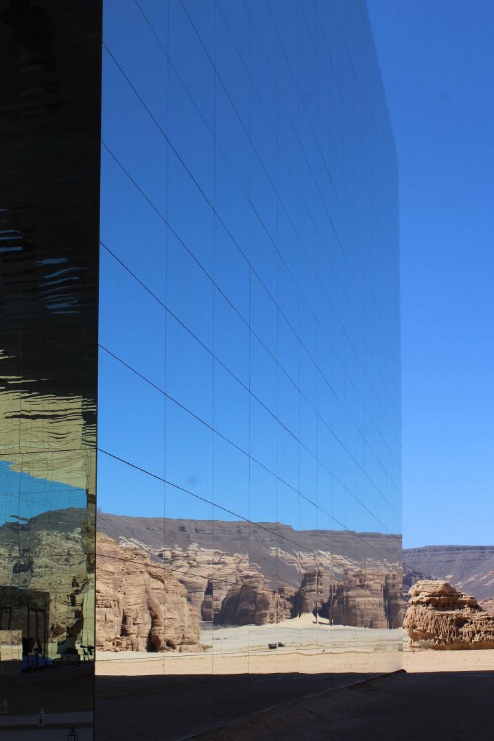 Дивлячись на будівлю, можна подумати, що це ілюзія. Але ні, в самому серці Аравійської пустелі справді є неймовірна дзеркальна будівля. Навколишні гори відбиваються по всій її довжині, тож споруда то зникає, то знову проявляється.