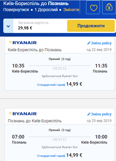 Підбірка Ryanair для європейського туру, який складати вам. А дати перельотів, на які є дешеві ціни, підібрала для вас Мандрія.