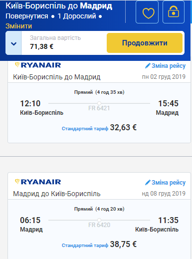 Київ – Мадрид, 2-8 грудня – 71 євро