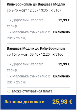 Київ – Варшава, 9-16 жовтня – 26 євро