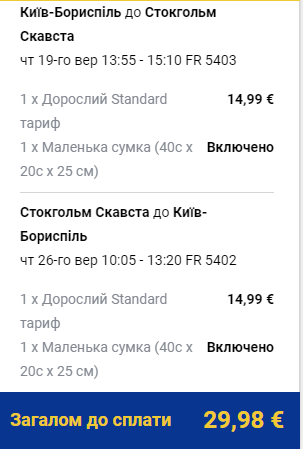Київ – Стокгольм, 19-26 вересня – 30 євро