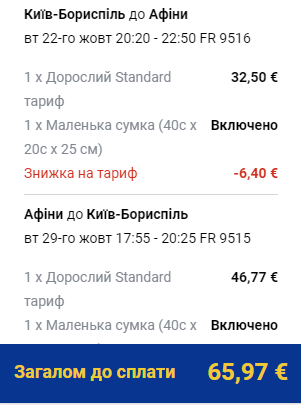 Київ – Афіни, 22-29 жовтня – 66 євро