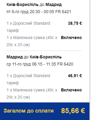 Київ-Мадрид, 6-11 грудня – 86 євро