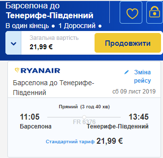 Барселона – Тенерифе, 9 листопада – 22 євро