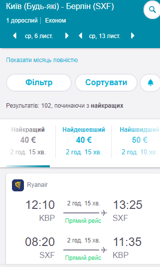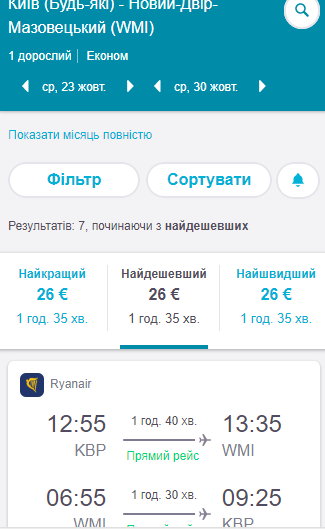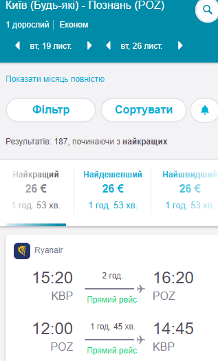 Низькі ціни Ryanair з різних міст України у міста Європи.
