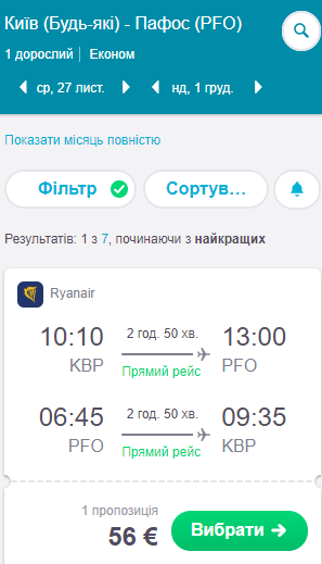 Київ – Пафос, 27 листопада 1 грудня – €56