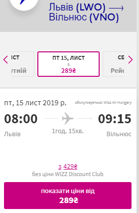 Львів – Вільнюс, 15-18 листопада – €19 / €29