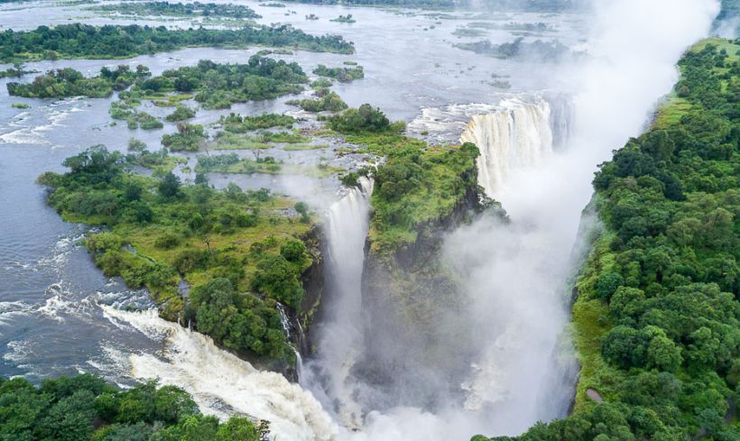 Найбільший у світі водоспад (якщо брати до уваги поєднання висоти та ширини), знаходиться на річці Замбезі у Південній Африці. Висотою він в 120 м (знаменитий Ніагарський приблизно вдвічі нижче), а шириною приблизно в 1800 м. Острови поділяють його на чотири частини.